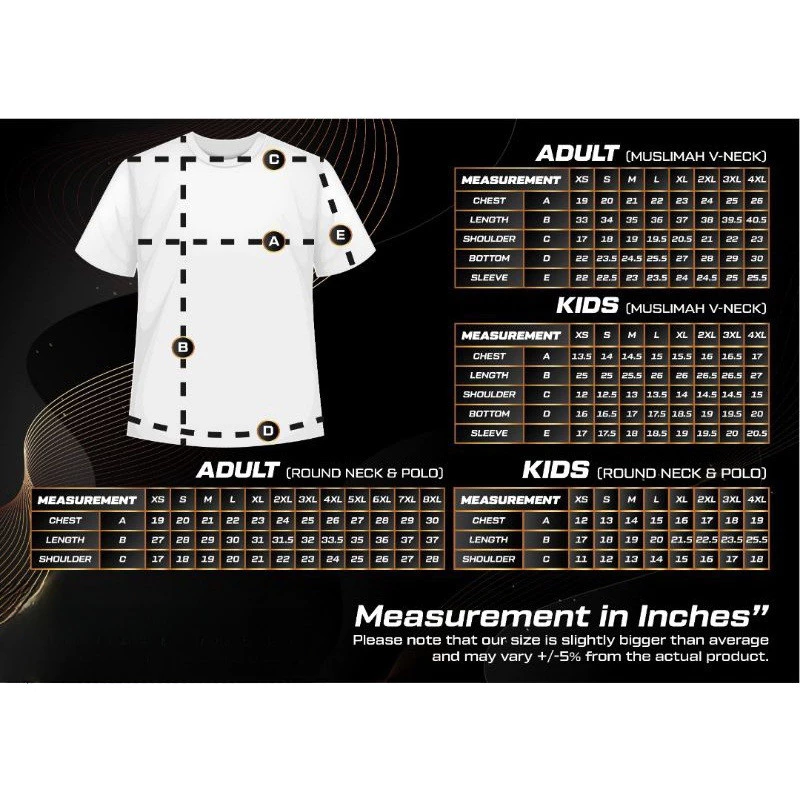 P/S: kalau boss nak custom baju ataupun size yang boss nak tiada dalam list, chat je min. nanti kita adjust.