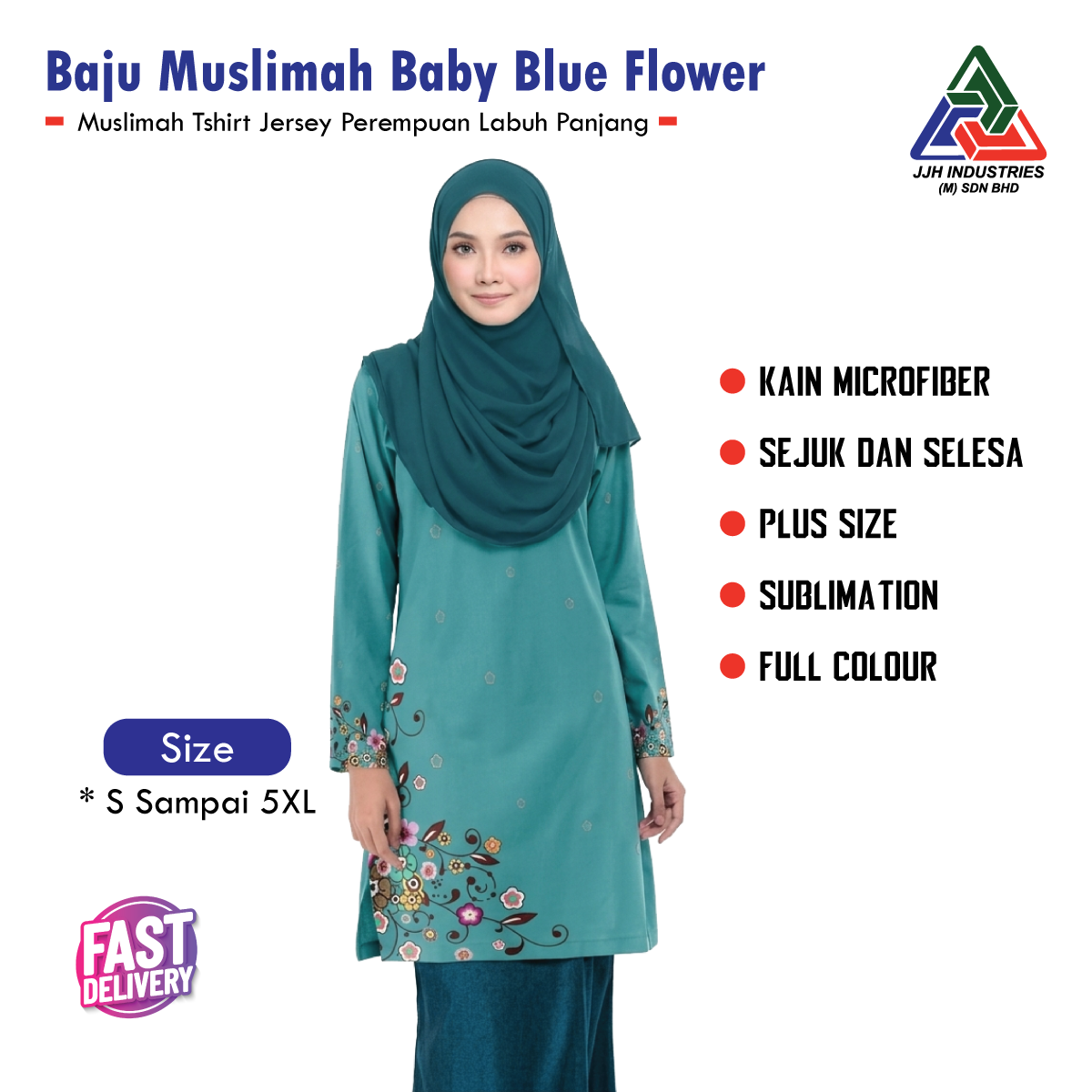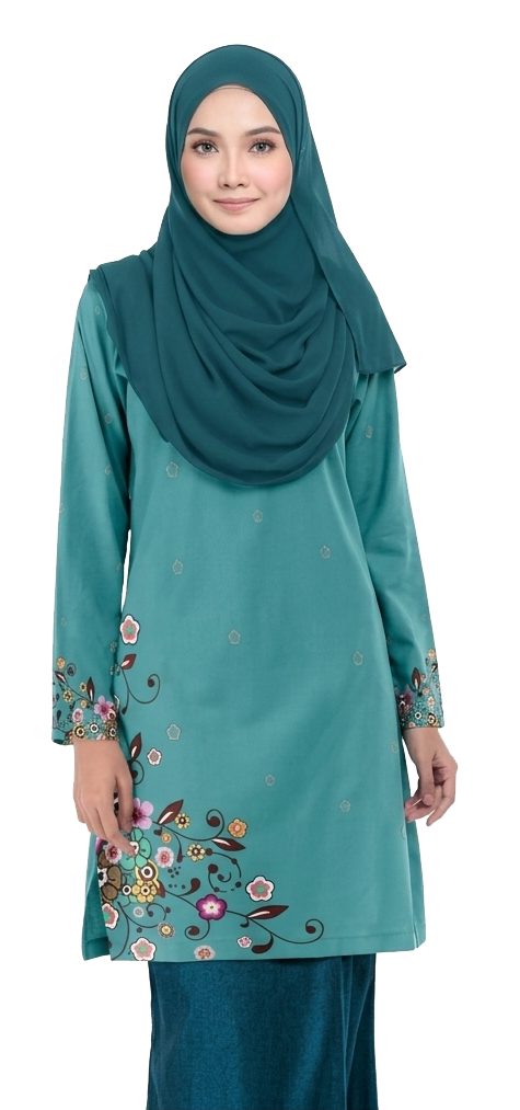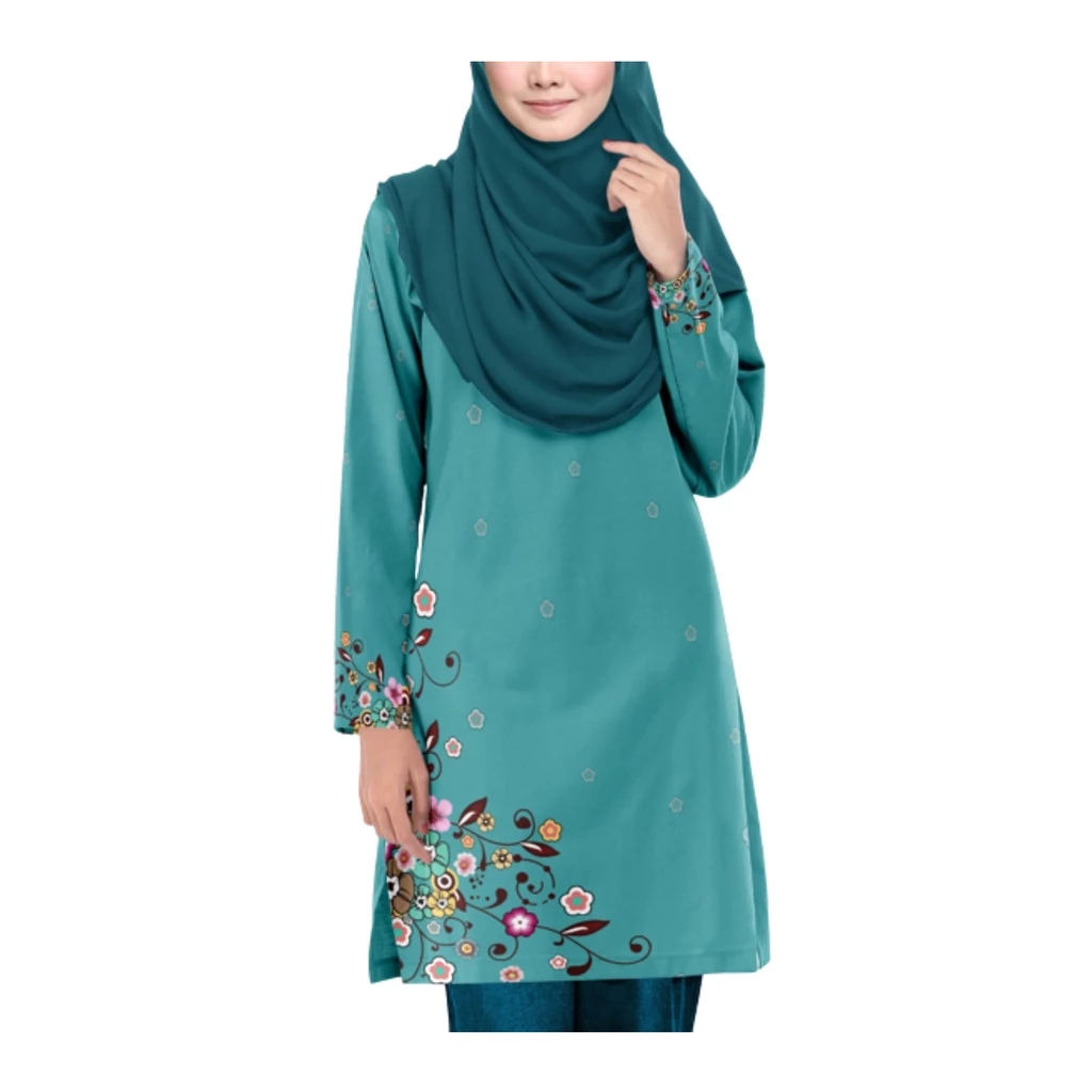 Baju Muslimah Baby Blue Flower Exclusive Jersey Tshirt Perempuan